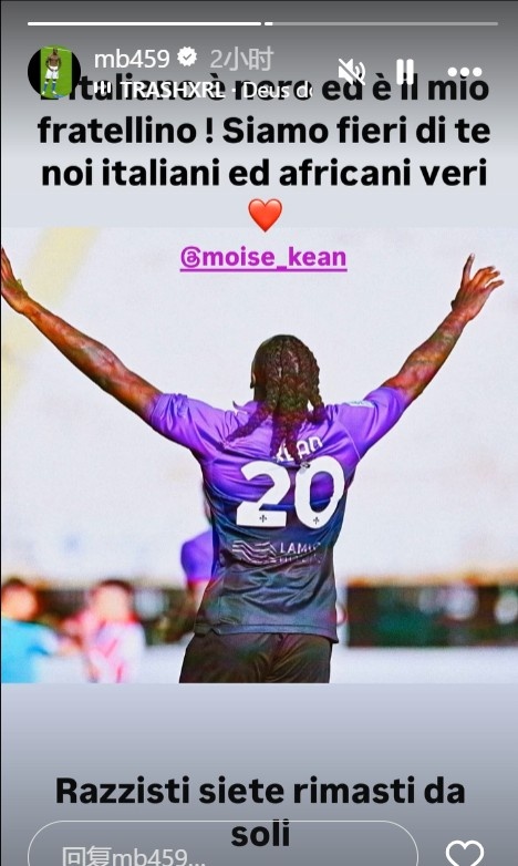2月11日訊 不久前,前意大利國腳巴洛特利更新了社交媒體,聲援了客戰(zhàn)國米時遭遇種族歧視的佛羅倫薩前鋒小基恩。巴洛特利寫道:“他是意大利人,是黑人,他還是我的兄弟!我們真正的意大利人和非洲人都會為你感到驕傲。種族主義者們,你們自個待著吧?!?/p>【相關(guān)新聞】:遭遇種族歧視!小基恩社媒回應(yīng):再次發(fā)生,在2025年 本文標(biāo)簽: 足球 意甲 佛羅倫薩